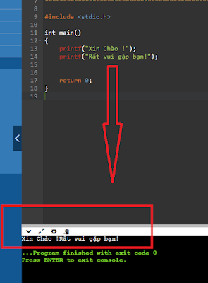 Tiếp theo bạn hãy thay Xin chao (không dấu) bằng Xin Chào (có dấu), bấm RUN để chạy thử, bạn sẽ thấy chương trình in ra câu Xin Chào ngon lành!